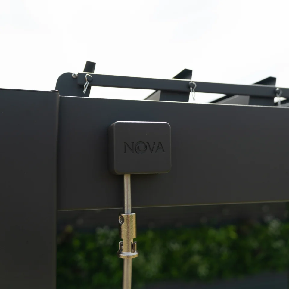 There is a brilliant built-in drainage system which prevents you from having to open the louvred roof to let water drain. Any rainwater that lands on the louvres flows into U-shaped channels. From here, the water flows from the roof and into channels in the pergola framework. Once in the horizontal framework, the rainwater will then flow into the inside of the hollow pergola legs and vertically down to the ground. This genius system means that you’ll never see the water draining off of the pergola. If you were to open the louvres when wet, the U-shaped channels prevent rainwater from dripping under the sheltered area, and getting your garden furniture wet.